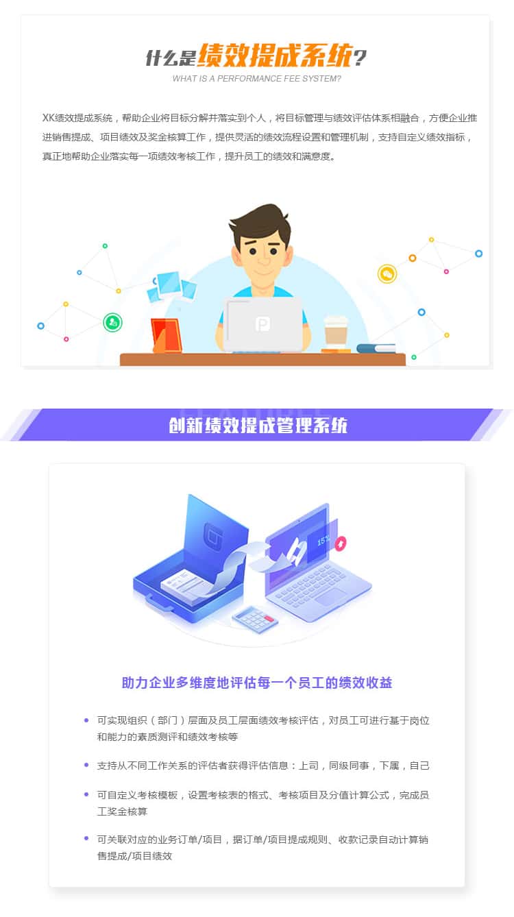 XK绩效提成系统,帮助企业将目标分解并落实到个人,将目标管理与绩效评估体系相融合,方便企业推进销售提成、项目绩效及奖金核算工作,提供灵活的绩效流程设置和管理机制,支持自定义绩效指标真正地帮助企业落实每一项绩效考核工作,提升员工的绩效和满意度。